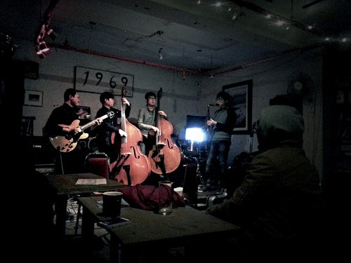 Are you an avid fan of jazz? And enjoy small intimate spots that don’t exactly appear in Seoul guidebooks? Than drop by Channel 1969 in Hapjeong, where every Tuesday you can listen to impromptu musical performances by top jazz musicians in the country. I had the pleasure of listening to a delightfully enchanting performance by Youngku Kim (guitar) and Kyungku Lee (saxophone), who were joined by younger musicians on various instruments.